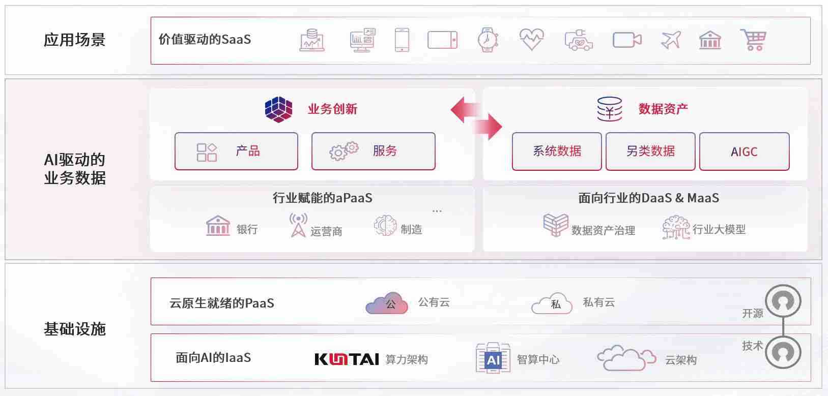 数字时代,,,围绕企业数字化转型的关键要素,,,,南宫28wd数码开创性的提出数云融合战略和技术体系框架,,,着力在云原生、、、、数字原生、、、、AI原生和信创产业上架构产品和服务能力,,,为处在不同数字化转型阶段的快消零售、、、汽车、、、、金融、、、、医疗、、政企、、教育、、、、运营商等行业客户提供泛在的敏捷IT能力和融合的数据驱动能力,,构建跨界融合创新的数字业务场景和新业务模式,,助力企业级客户建立面向未来的核心能力和竞争优势,,,全面推动社会的数字化、、智能化转型升级。。